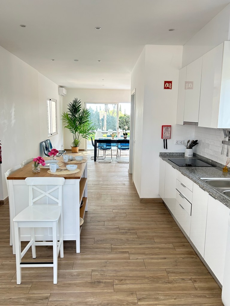 La maison principale entièrement climatisée est composée de 2 chambres, 1 salles de bain, 1 salle de bain d’invités, une cuisine équipée, un salon/ salles à manger avec télévision et Wifi, une buanderie avec lave linge et sèche linge.